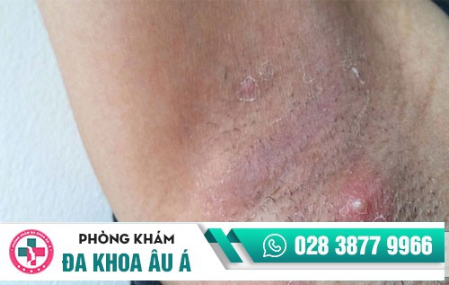 Các khu vực da ẩm ướt là nơi dễ bị nhiễm trùng nấm men, phổ biến là nấm Candida. Nhiễm trùng nấm men thường gây ra các nốt mụn đỏ, mụn mủ hoặc các nốt mẩn đỏ bên trong có chứa mủ.